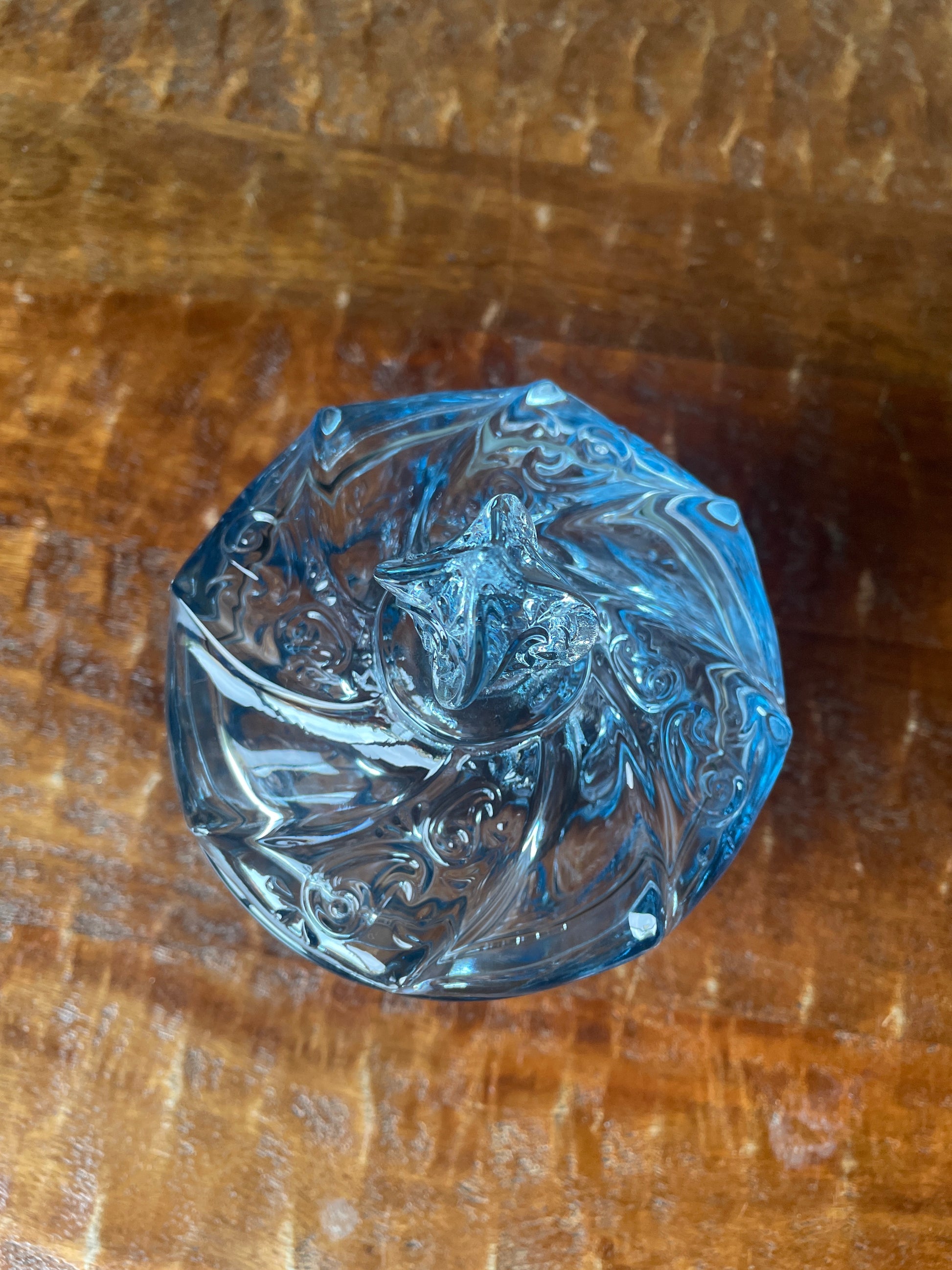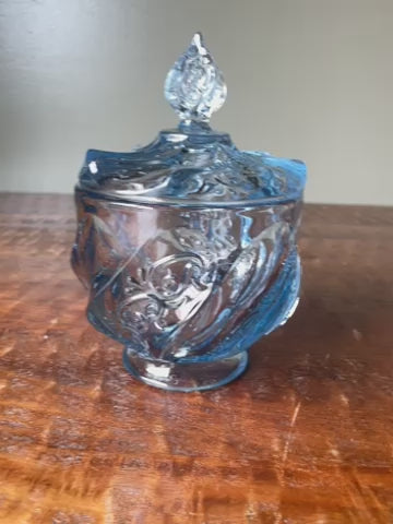 Vintage Fenton Blue Glass Candy Dish Paisley Swirl Design
