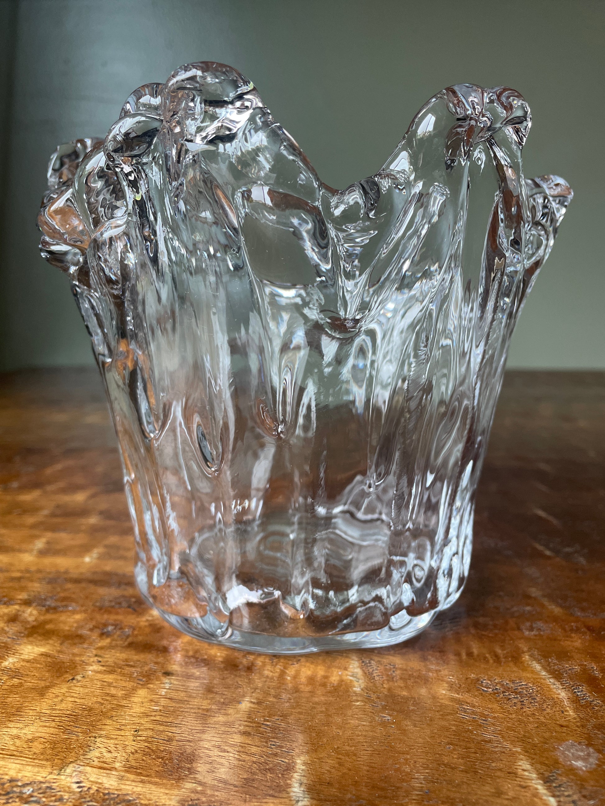 Vintage Hand Blown Sculptural Waves Art Glass Vase